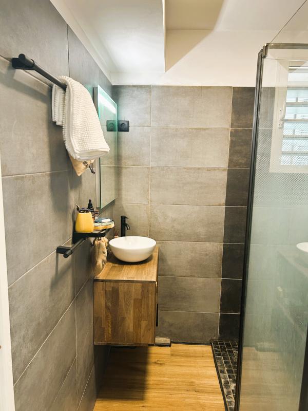 LNA propose en primeur à Saint-Paul, dans une résidence de standing sécurisée, ce très bel appartement de 2 chambres, varangue, terrasse et jardin proposant quasi 180m2 utiles à ses occupants : à l'intérieur de 64m2 bien agencé, le jardin privatif, le séchoir, mais surtout la varangue et la terrasse aménagée avec son jacuzzi vous apportent un grand confort de vie. Le séjour-cuisine moderne, restauré récemment et bien meublé et équipé offre 32m2, la salle d'eau et l'espace nuit comprenant 2 chambres climatisées avec placard et 2 lits doubles en très bon état.