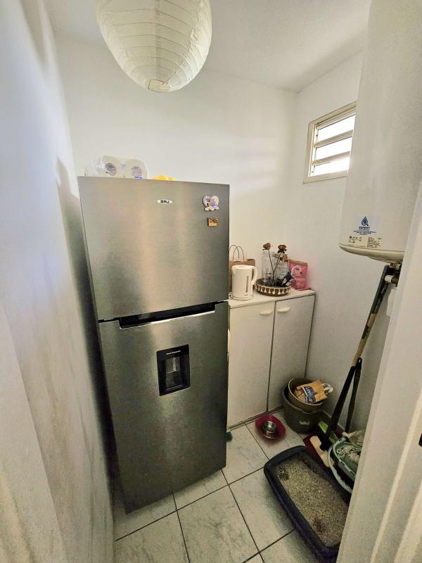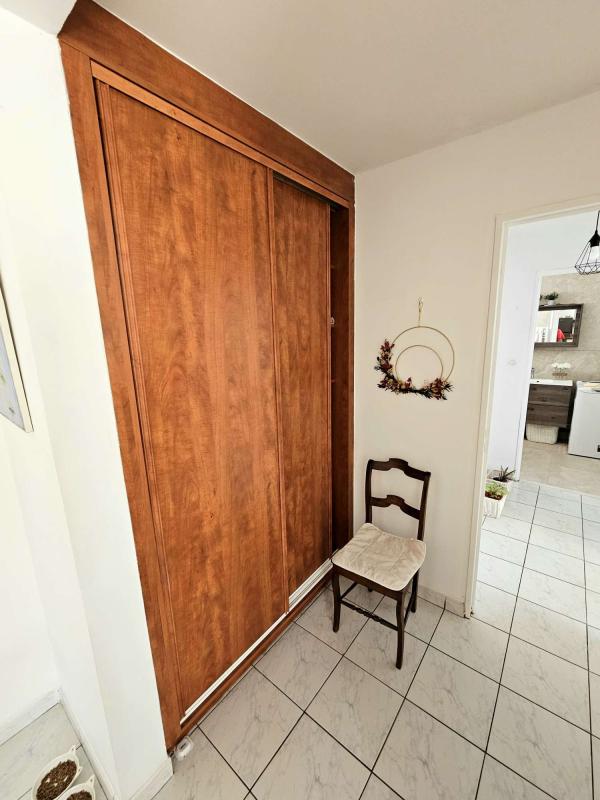 L'appartement se compose de la façon suivante. Une entrée avec un très grand placard donnant sur le grand séjour rectangulaire et la varangue fermée. Une belle cuisine ouverte sur le séjour, entièrement rénovée et bénéficiant également d'un cellier.