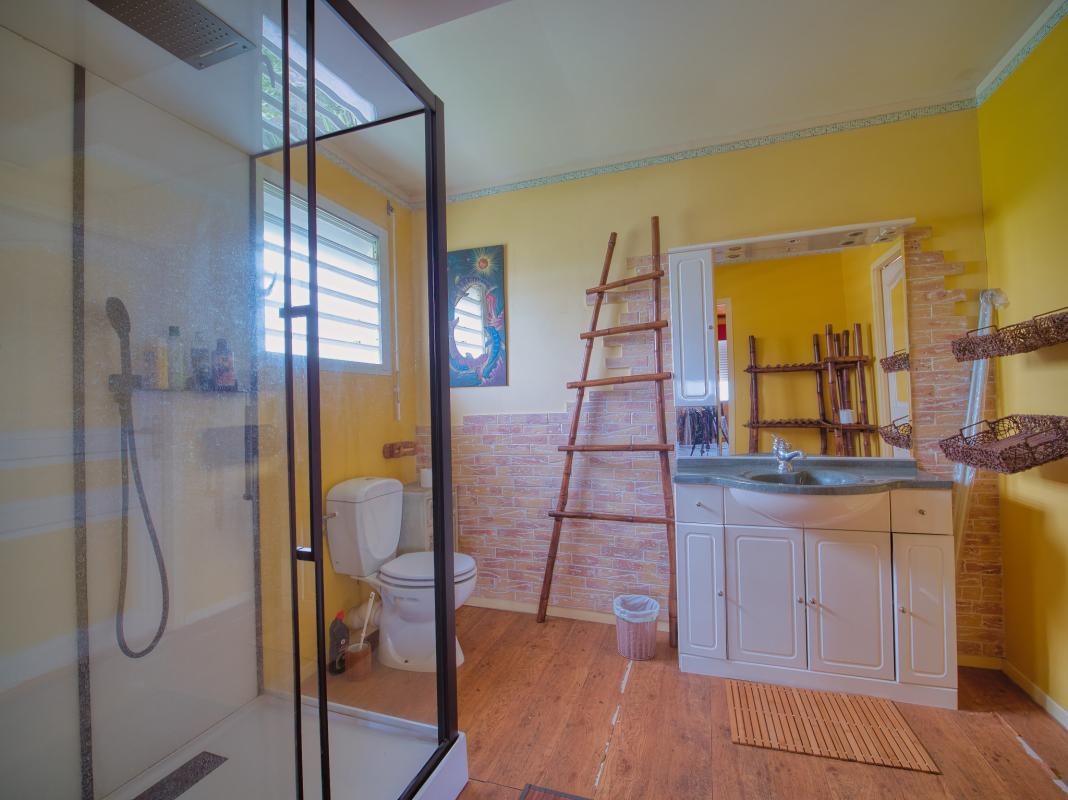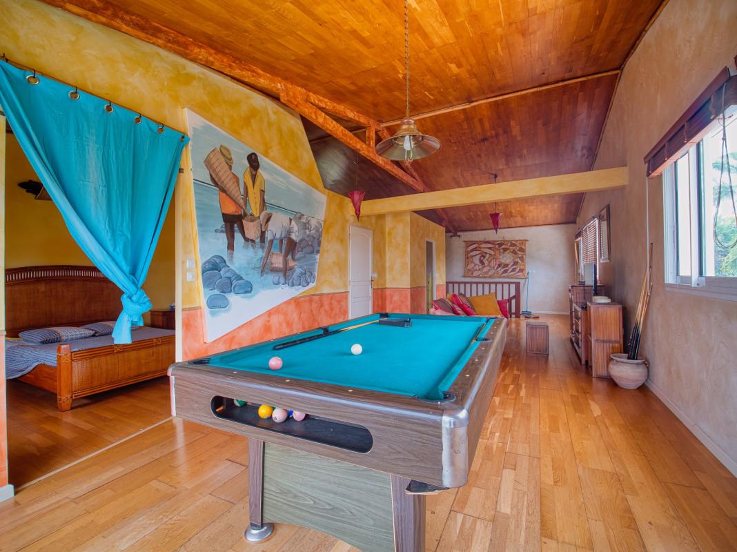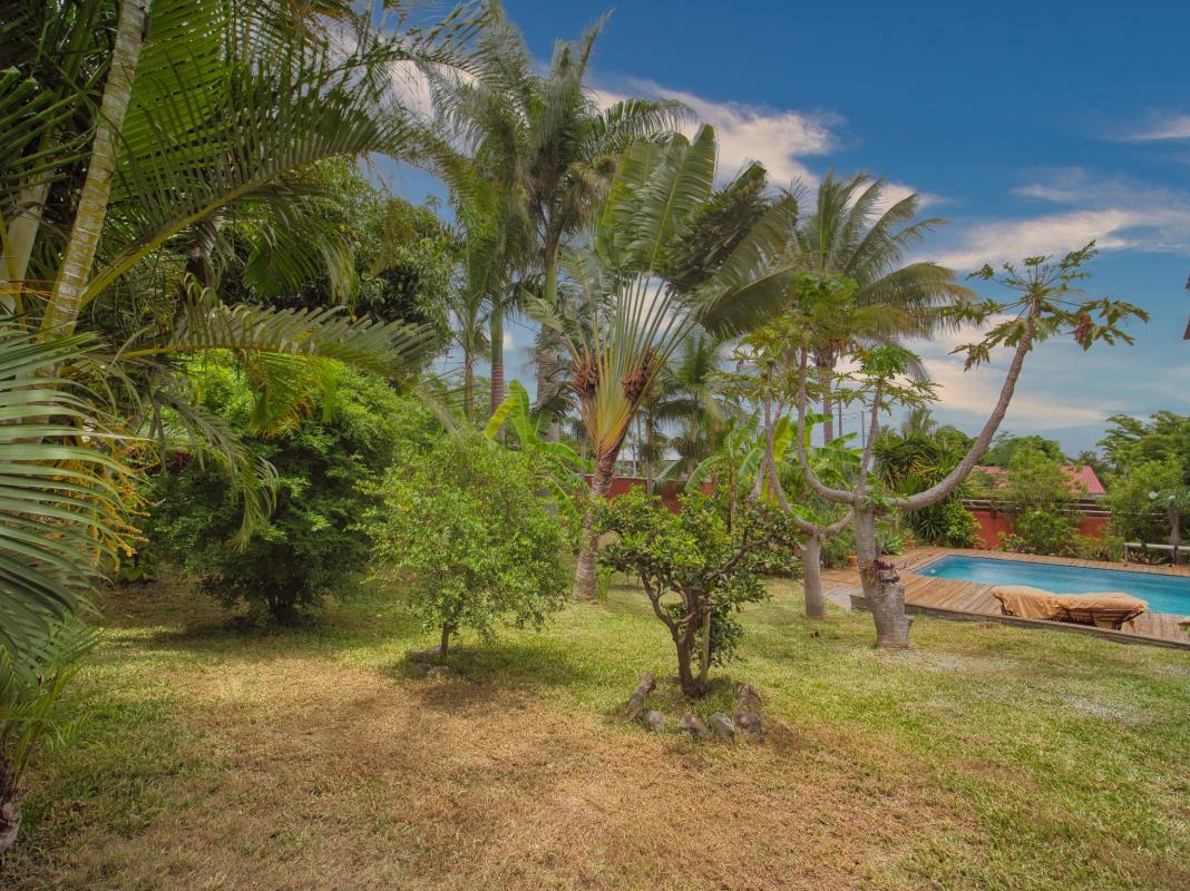 À l'extérieur, un jardin arboré et paysagé vous enveloppe de verdure et de calme. Laissez-vous charmer par la grande varangue accueillante et ombragée, idéale pour vos repas en plein air, vos siestes estivales ou vos soirées autour du barbecue.