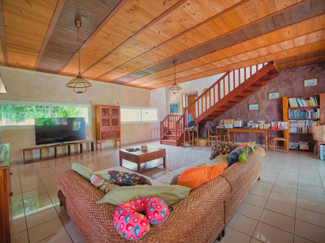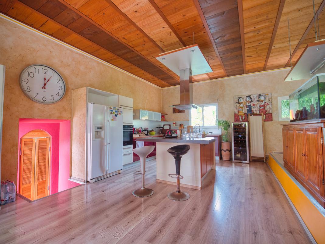 Dès l'entrée, vous serez séduit par le vaste séjour lumineux, sublimé par un plafond en bois chaleureux et une décoration aux tons naturels. L'espace de vie principal s'ouvre sur une cuisine américaine, entièrement aménagée et équipée, parfaite pour partager de beaux moments en famille ou entre amis.