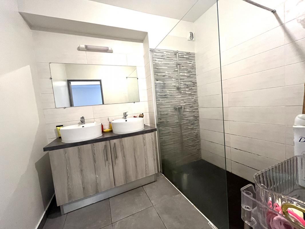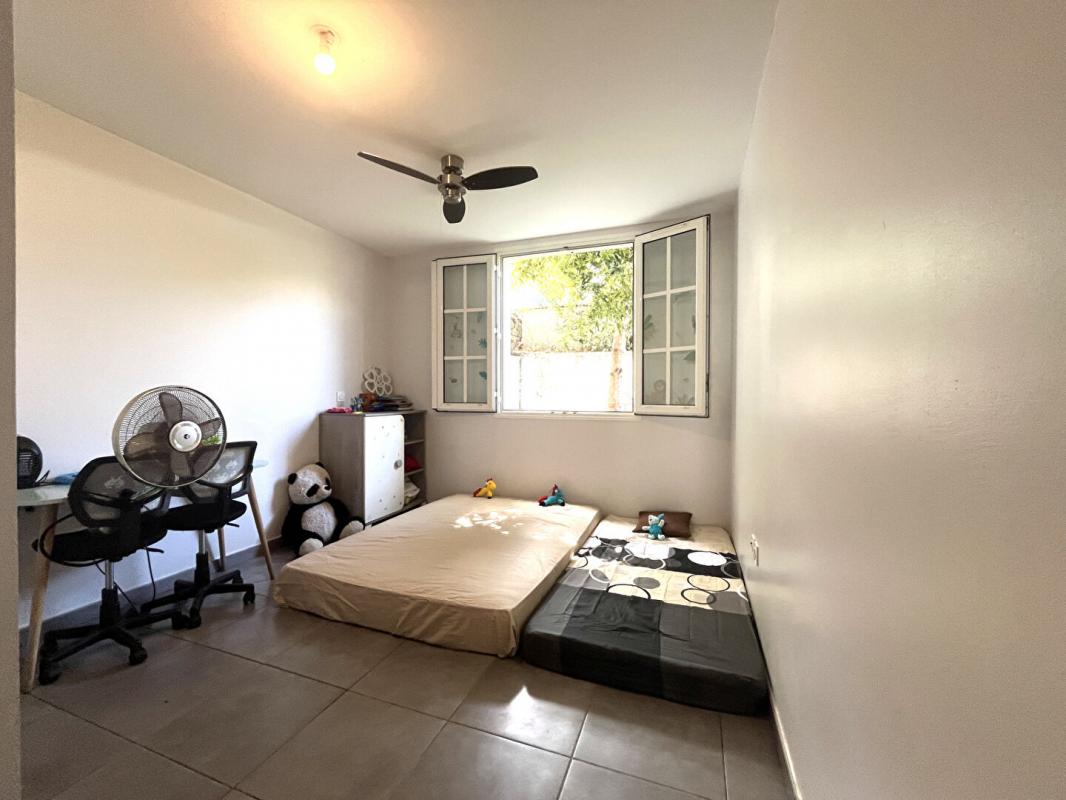 Séjour ouvert sur varangue et jardinet de 30m² cuisine, 2 Chambres avec placards et brasseurs d'air, salle de douche et wc indépendant.