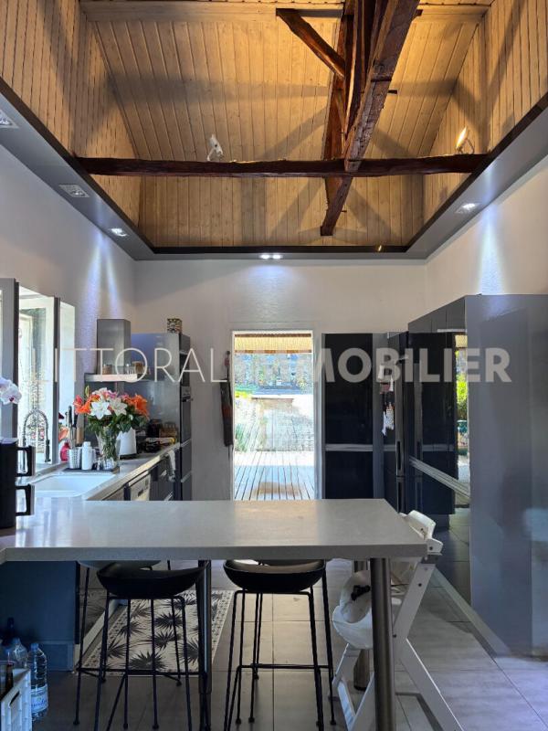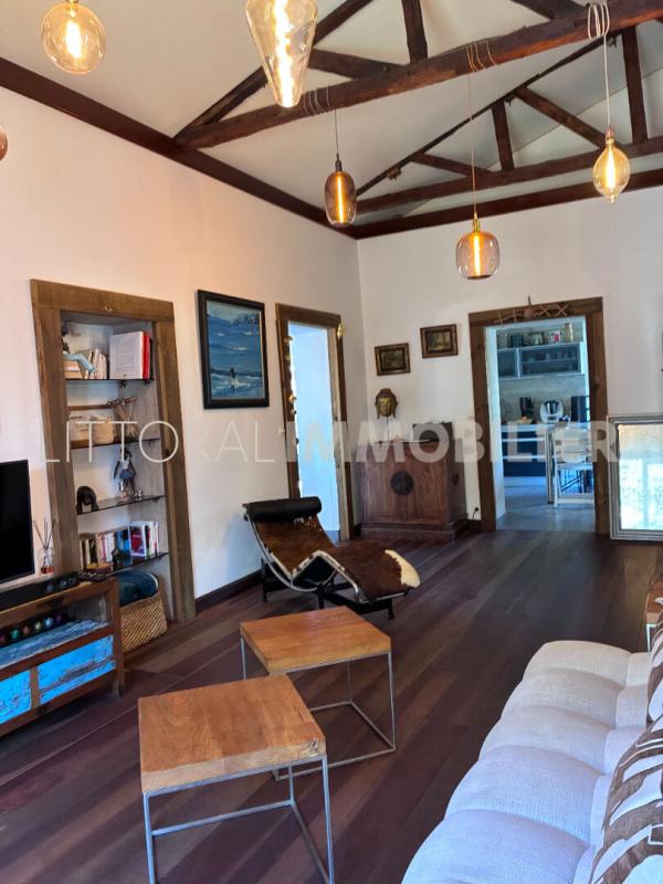Elle se compose au rez-de-chaussée, d'une cuisine aménagée et équipée avec poutres apparentes, d'un séjour, d'une salle à manger, de deux chambres, d'un bureau, d'une salle d'eau et deux varangues. Une cave, et une buanderie à l'extérieur.