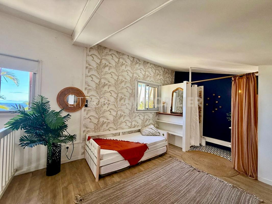 Terrain parfaitement entretenu, piscine avec vue mer, garage et possibilité de stationner deux véhicules supplémentaires.