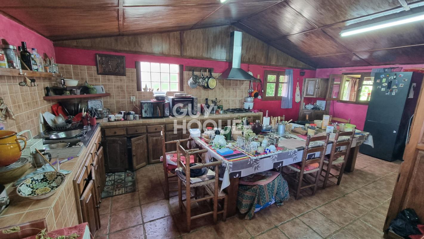 Vous disposerez d'un réfectoire d'environ 74 m² avec deux cuisines au feu de bois, et d'un hangar de plus de 130 m².