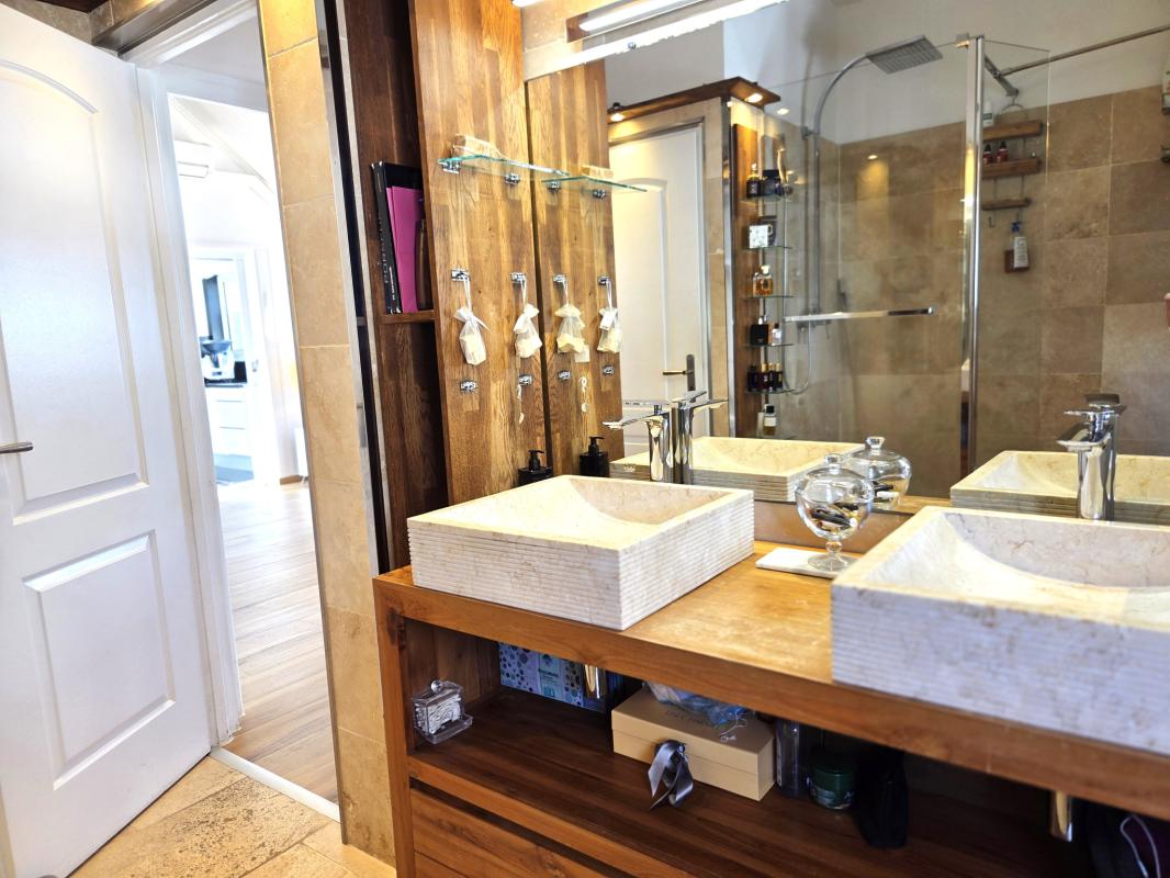 Cuisine séparée sur-mesure, parfaitement équipée Suite parentale avec rangements intégrés et salle d'eau minérale, élégante et apaisante À l'étage : 2 chambres (dont un dressing modulable), volumes clairs, ambiance maîtrisée, salle d'eau attenante